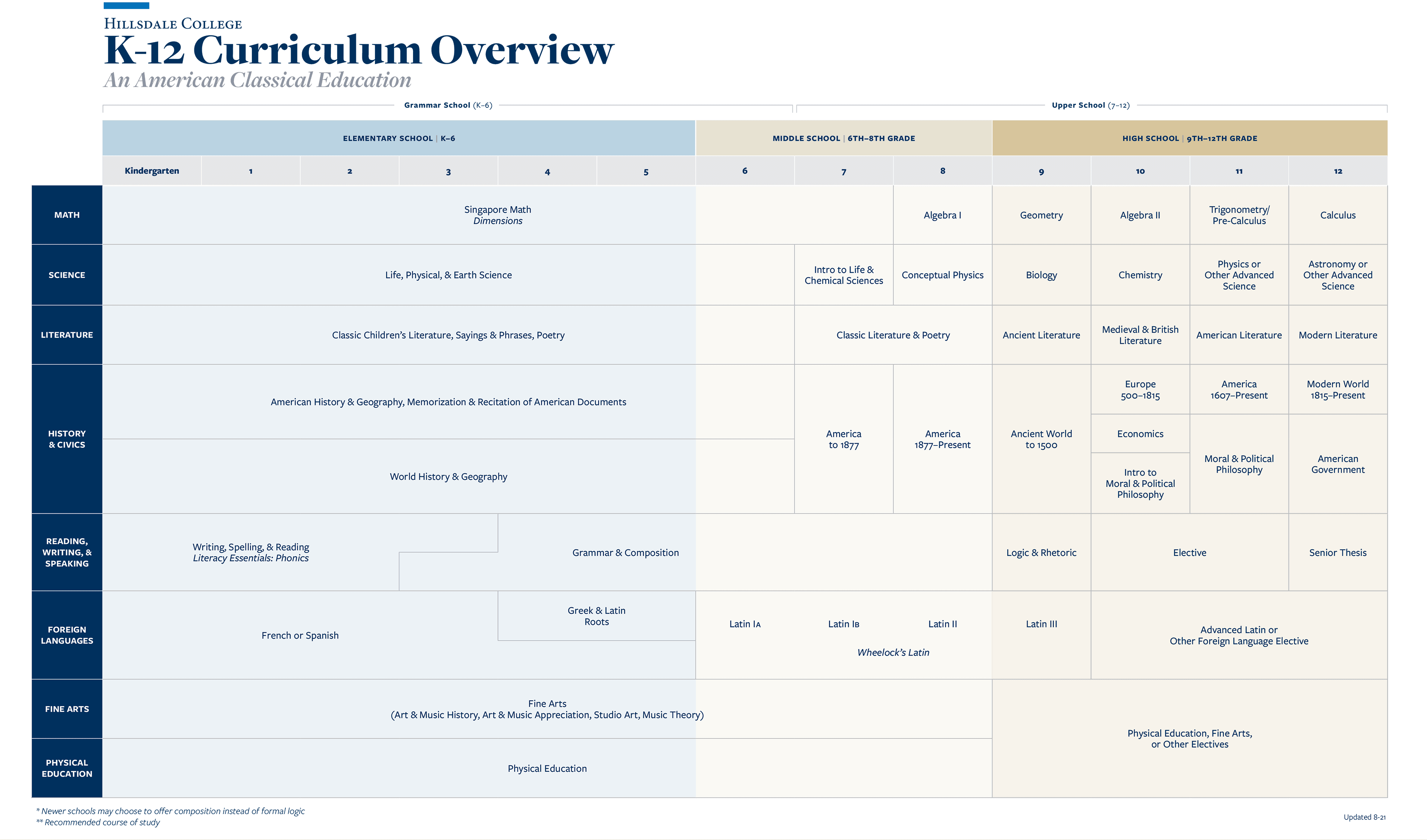 Hillsdale College Curriculum Schools are supported in this mission with: